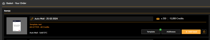 A seed can be added to each order line in the basket. Seeds are defaulted off.