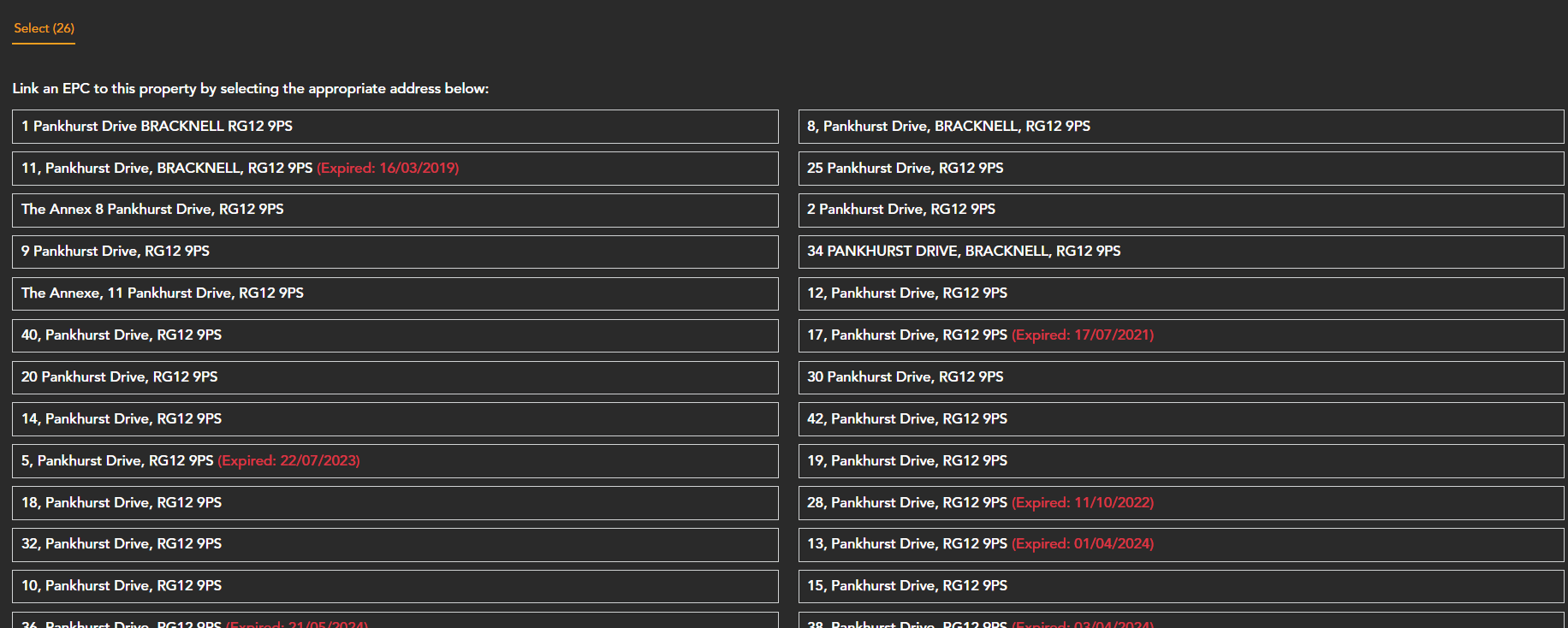 Sprift shows the EPC data from the government source. Where possible the EPC will link to the dashboard automatically.