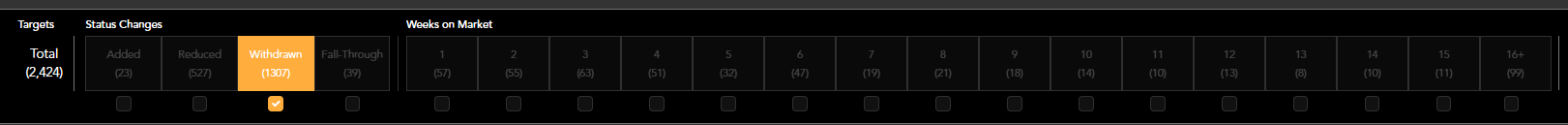 Due to the amount of addresses within the Withdrawn and 16+ weeks targets, they work as a standalone filters.