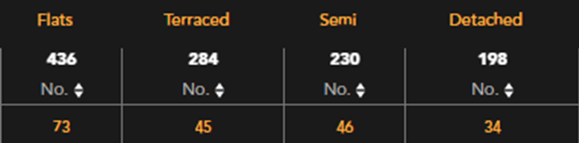 Agency stock levels are filtered by property type. These numbers are then used to calculate the agents market share %.